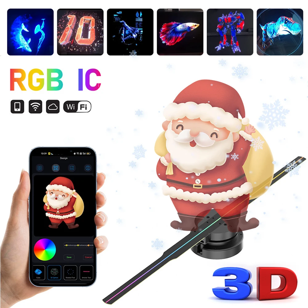 3D 홀로그램 팬 42CM WiFi 3D 홀로그램 프로젝터 광고 디스플레이 라이트 HD 홀로그램 프로젝터 상점 바 파티 크리스마스