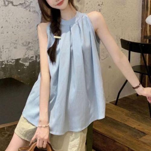 블라우스 민소매 여성 무드 스타일 여성블라우스 여리여리 여름 홀터넥 셔링