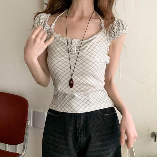 나시티셔츠 홀터넥 시스루 크롭 이너탑 슬림핏 여름 레이어드 티셔츠