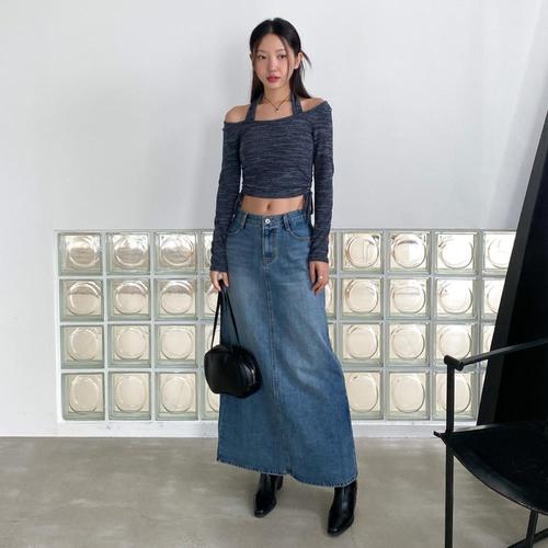[옷자락] 여자 여름 린넨 홀터넥 슬림핏 레이어드 니트 롱스커트 투피스