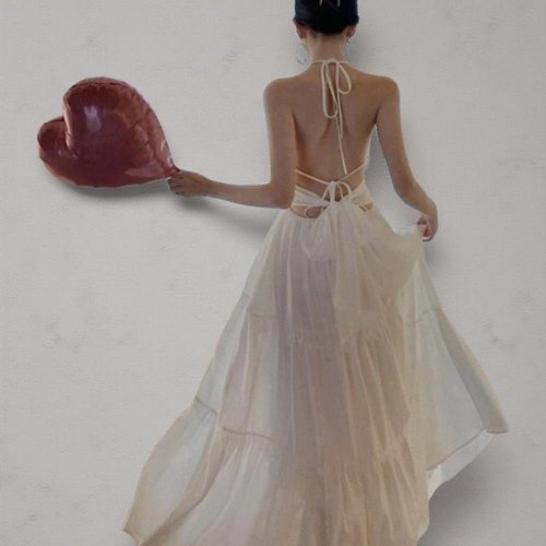 [옷자락] 여성 백리스 홀터넥 리본 스트랩 여름 원피스