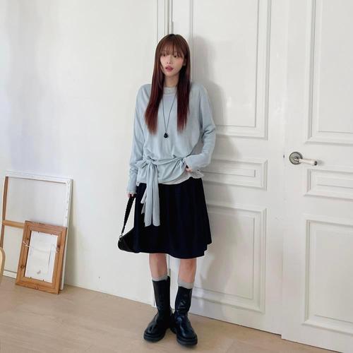 [옷자락]여자 페미닌 데이트룩 루즈핏 스트랩 니트