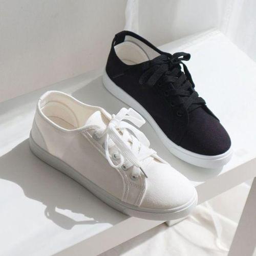 [에이치플러스몰]블랙 화이트 캔버스화 여대생 캠퍼스 패션 운동화