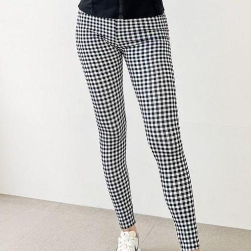 블랙화이트배색 9부 DJJ8069 레깅스 체크 스판 WD40525