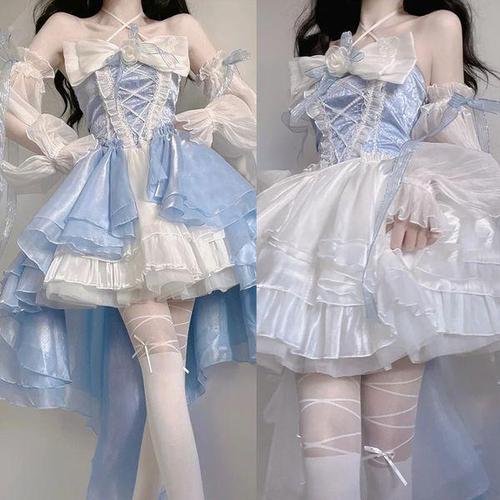 [지앤제이]화이트블루 플라워 프릴 드레스 교복 학생복