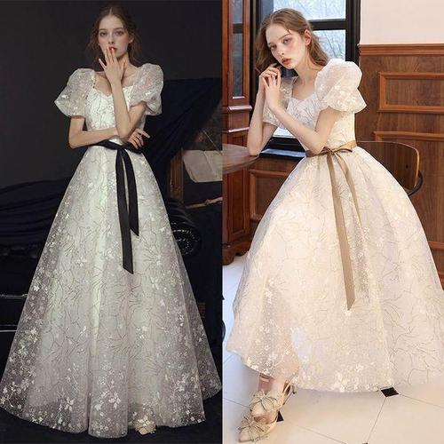 [교복몰]화이트 스퀘어넥 플라워자수 발레코어 원피스 경성