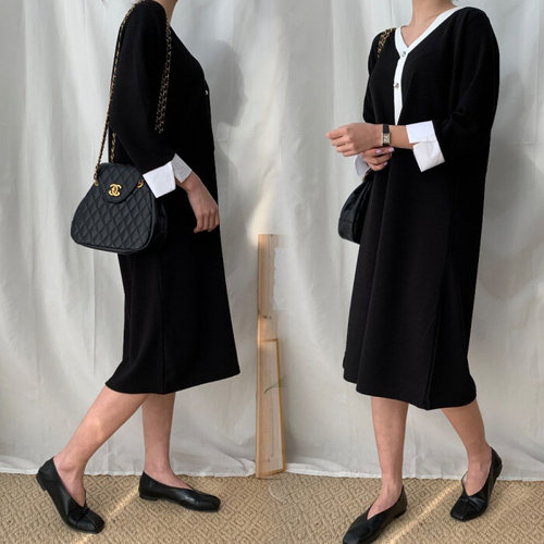 나야홍 / 빅사이즈배색원피스 9638L502 화이트쓰리펄원피스 BS