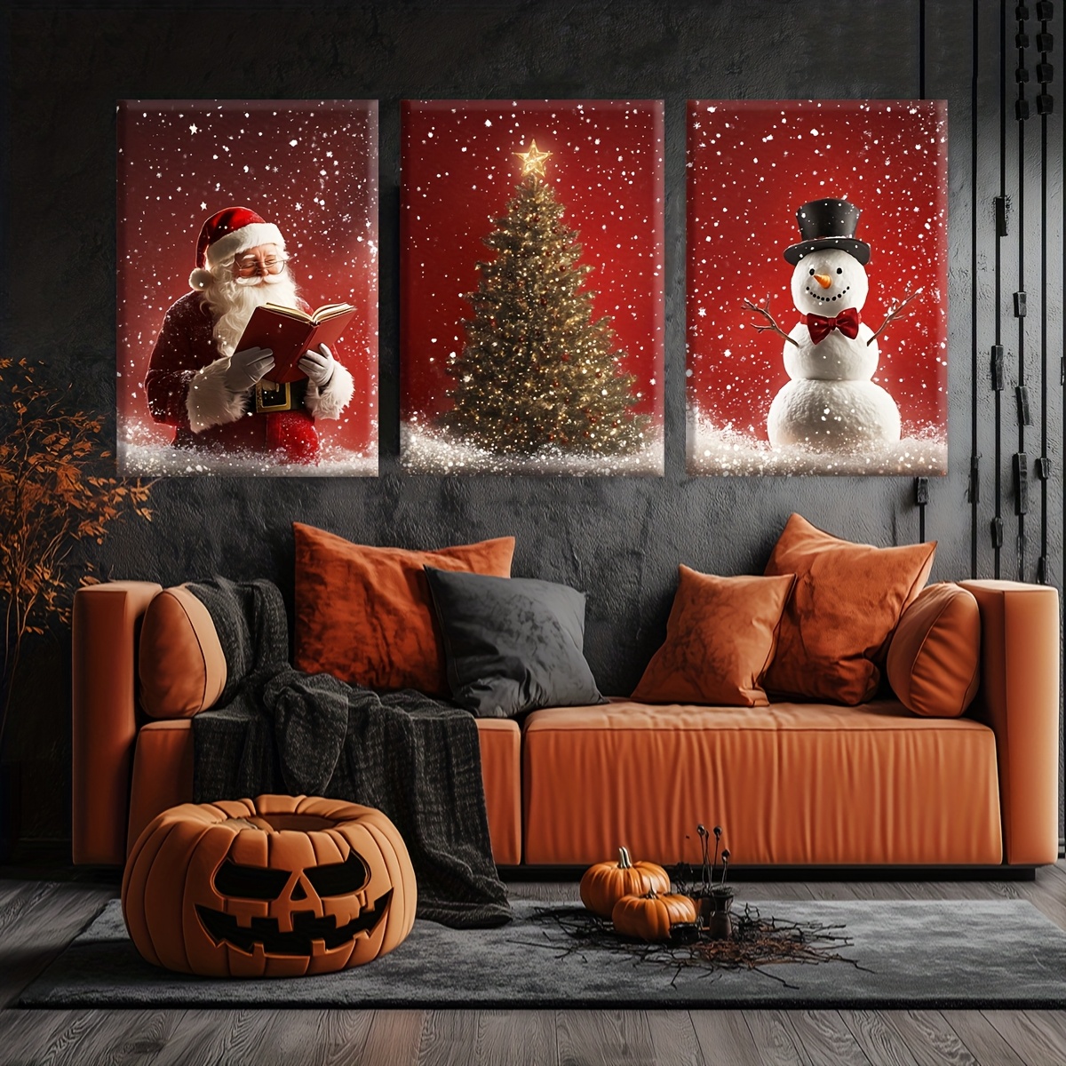 TEMU 3개 세트 액자 없는 캔버스, 크리스마스트리 눈사람 눈꽃 포스터, 장식용 그림, 친구 가족을 위한 완벽한 선물, 홈룸 벽 장식, 거실 침실 사무실용 8K, H