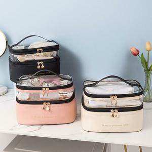 [XBJJ3K4K]여행용 메이크업 화장품 세면 2단 파우치 가방