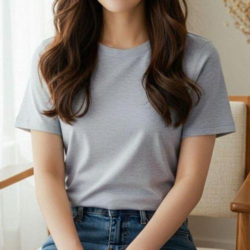 [오너클랜]인기상품 여성용 회색 라운드넥 반팔 면 티셔츠 여름 크롭 반팔 상의 [WFLLKDN_260305]