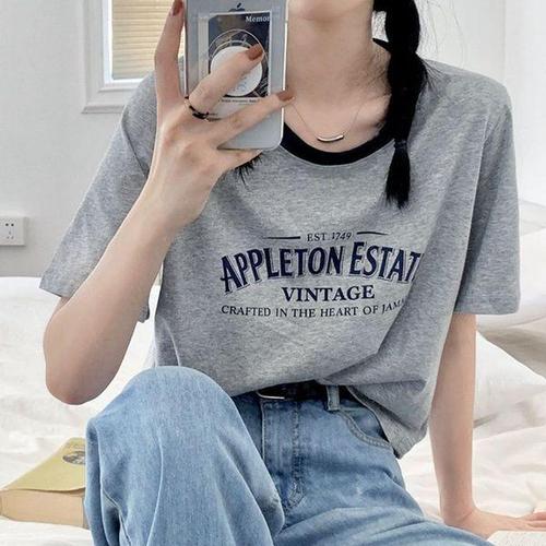 [에이치플러스몰]여성 세미 크롭 라운드 여름 예쁜 반팔 티 셔츠 회색