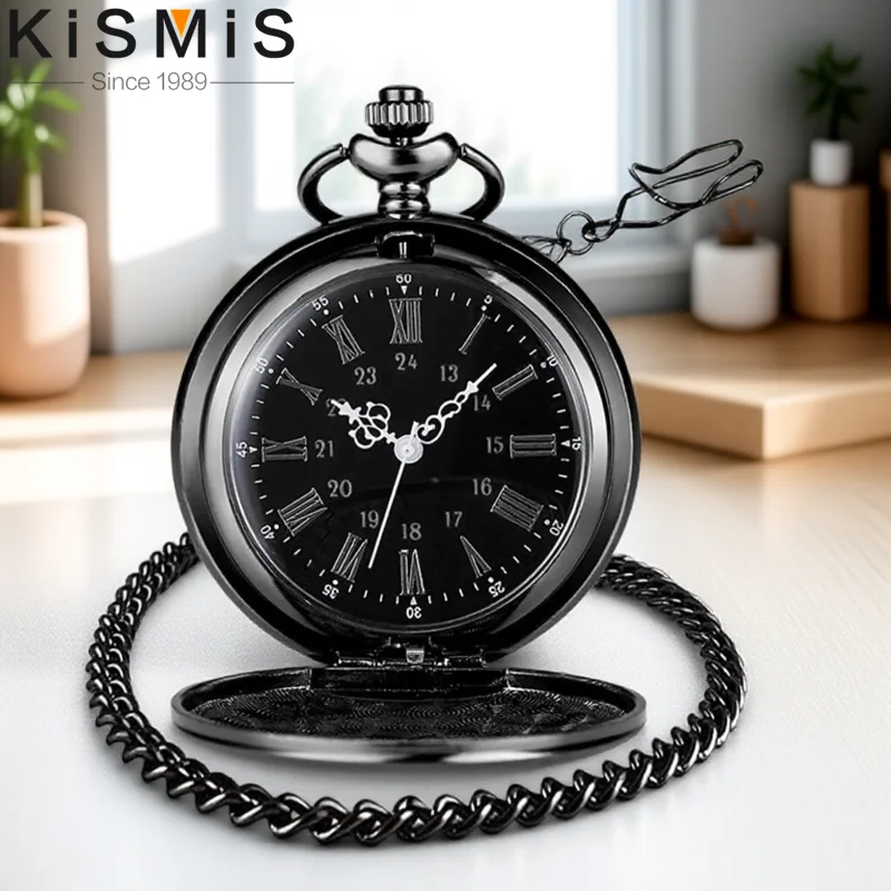 블랙 디콘 회중 시계 애니메이션 회중 시계 목걸이 시계 다이얼 세련된 쿼츠 시계 플립 로마