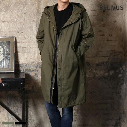 [빌리버스]남자 가을 데일리 베이직 오버핏 후드 롱 야상 BADS002