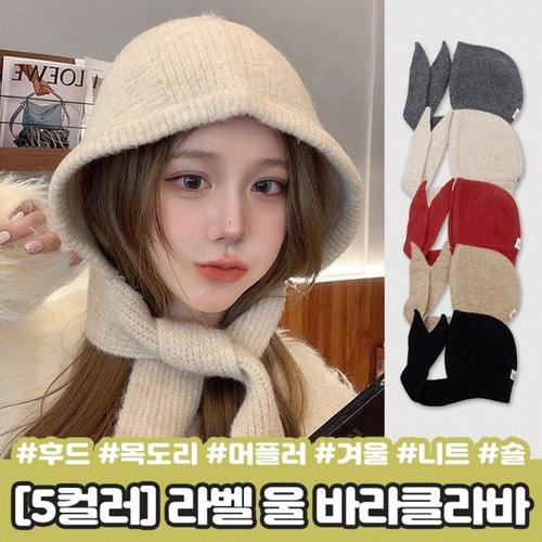 울 바라클라바 후드 머플러 모자 목도리 니트 어깨 숄 가디건
