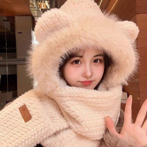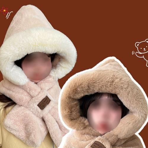 머플러 후드 넥워머 모자 숨겨진 곰 귀도리 WFMB488
