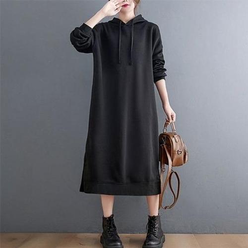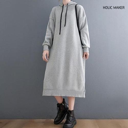 [셀러허브_여성트랜드패션]오버핏 스타일 후드원피스 기모 후드 롱 옆트