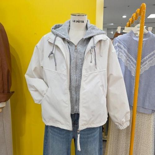 [옷자락]여자 배색 체크 후드집업 바람막이 바스락 봄 점퍼