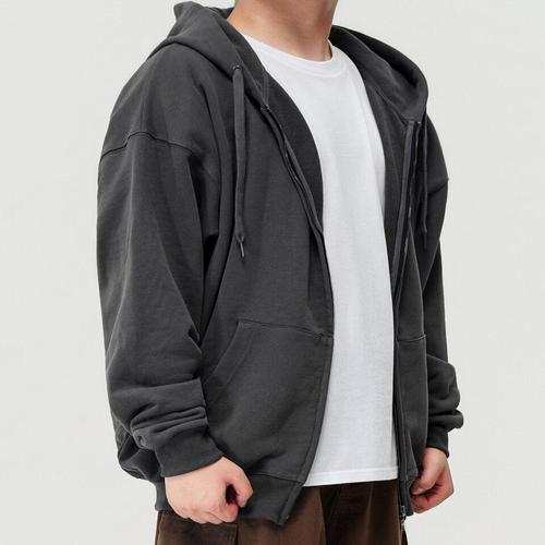 [버클다운]500G 헤비코튼 심플 오버핏 TWO-WAY 후드집업 (CHARCOAL)