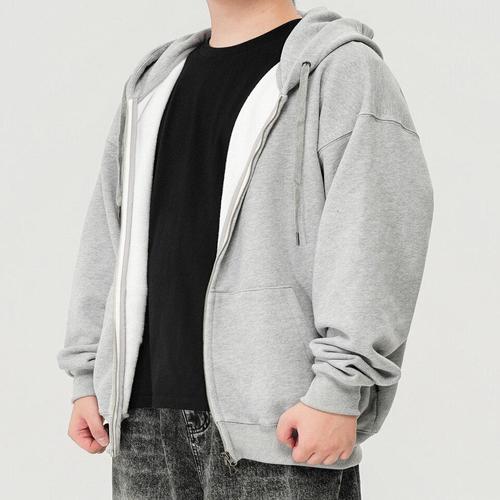 [버클다운]500G 헤비코튼 심플 오버핏 TWO-WAY 후드집업 (MELANGE GREY)