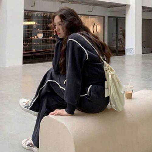 [유야]여성 벨벳 후드집업 와이드팬츠 트레이닝 세트 -FPST0454- 가을 겨울