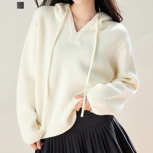 [퀸이즈][퀸이즈] 미페 루즈핏 크롭 니트 후드 티셔츠