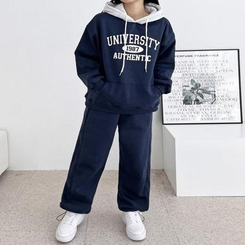 [제니유]제니유 여성 기모 레터링 후드 트레이닝 상의 하의 셋업 세트