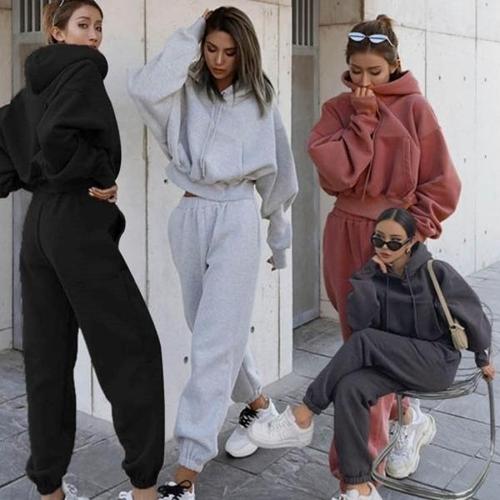 [엄지척]여성 크롭 후드 트레이닝 세트 안감 스티치 기모 셋업_20387195_667501