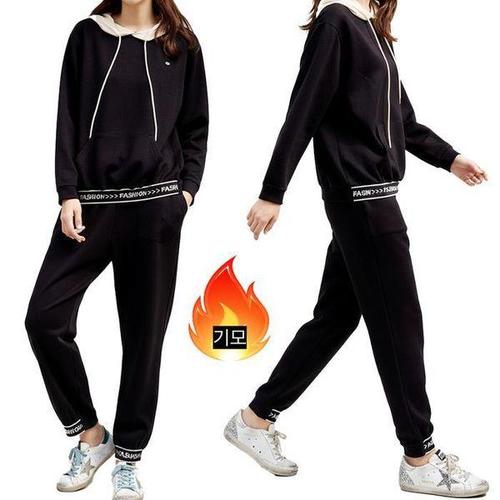 [셀러허브_여성트랜드패션]제니유 여성 기모 레터링 후드 트레이닝 상의 하의 셋업 세트