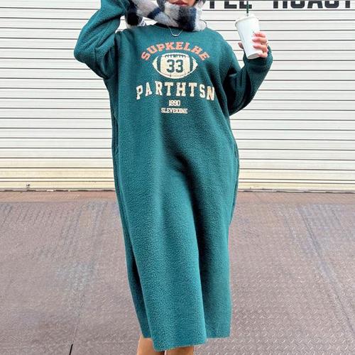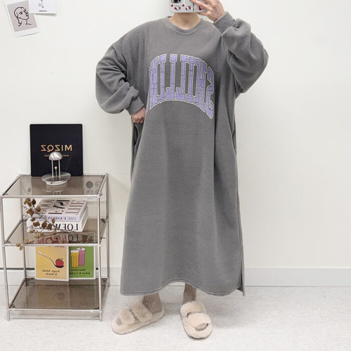 미즈큐즈 / 빅사이즈 후리스 오버핏 레터링 기모 롱원피스 3color