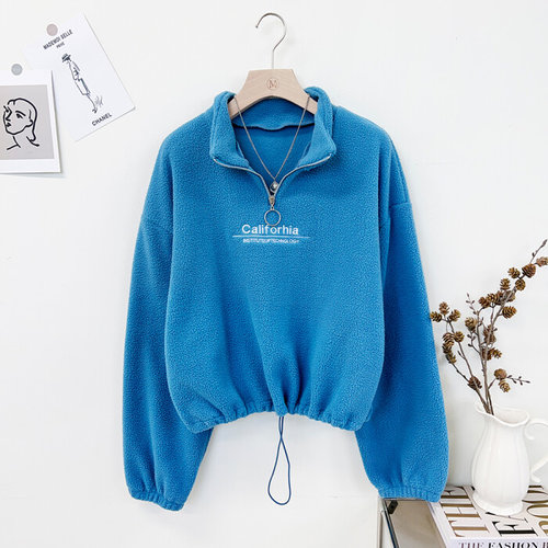 미즈큐즈 / 캘 리 자수 양털 뽀글이 후리스 루즈핏 반집업 맨투맨