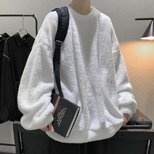 [프랭키뉴욕]프랭키뉴욕 남자 후리스 기모 티셔츠 겨울 플리스 루즈핏 두꺼운 라운드티_CMTS01