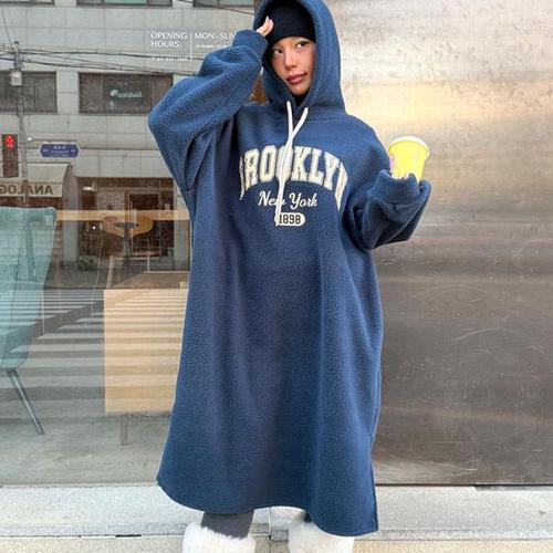 H스타일(OP)덤블후드OPS 겨울 후리스 원피스 OPS 드레스 데일리룩 홈웨어 파자마 잠옷 오버핏