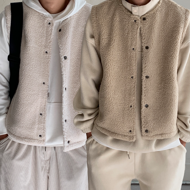 1+1 여성 뽀글이 조끼 양털 후리스 단추 조끼 기모 집업 가을 겨울