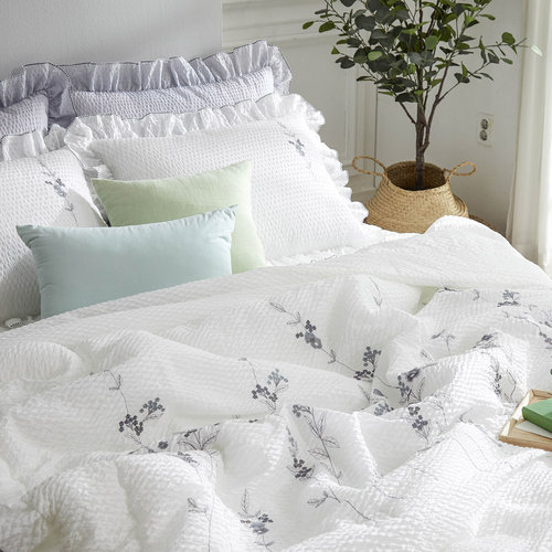 TEMU 럭셔리 흰색 새틴 프린트 이불 커버 세트