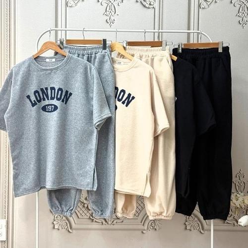 [다잇템][다잇템] 여성 사이드슬릿 필기체 플리스 츄리링바지 기모반팔티와 세트_23943257_588872