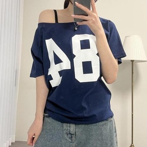 [다잇템][다잇템] 여자 볼드숄더 빅사이즈 반소매 필기체 넘버 티셔츠_22958790_588872