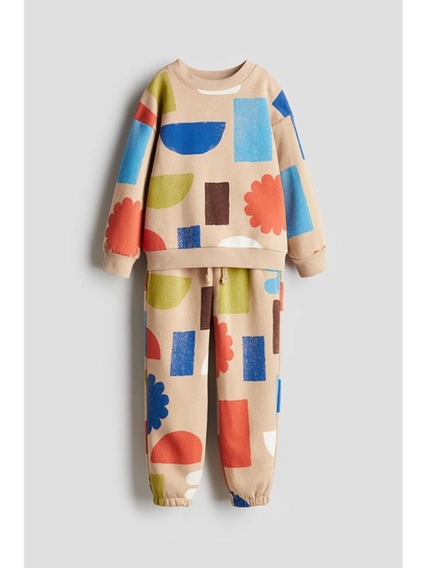 [에이치엔엠] 프린트 스웨트셔츠 & 조거 팬츠 세트 베이지/패턴 1293961001