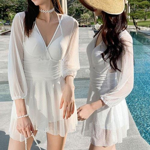 긴팔 체형 보정 원피스 수영복 휴양지 호캉스 뱃살 커버 WFKNPDH