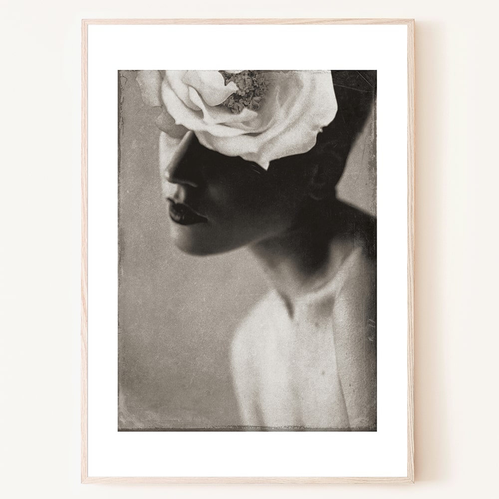 빈티지 여인 초상 흑백 포스터 꽃 플라워 방그림 이쁜 사진 액자
