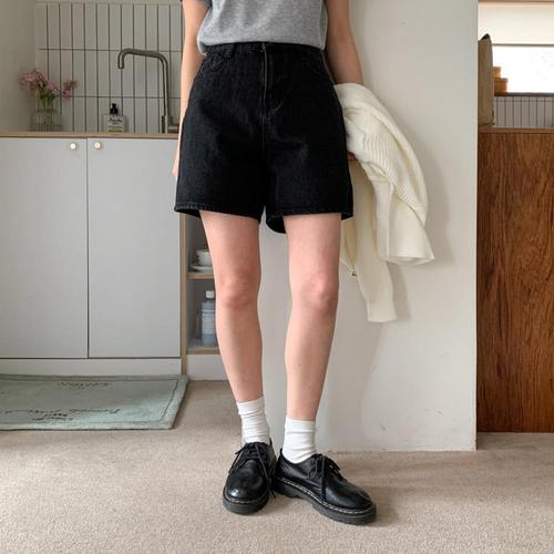 [옷자락] 여자 A라인 흑청 데님 반바지