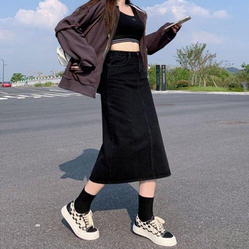 [다잇템]여자 봄 캐주얼 워싱 흑청 트임 일자 롱스커트