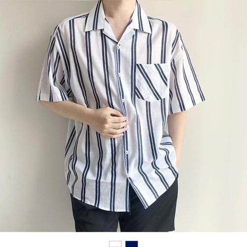 [BZG9H99O_49]화이트네이비 스트라이프 반팔셔츠 청남방