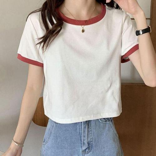 [에이치플러스몰]여자반팔티 배색 여자흰티 여성티셔츠 여자반팔면