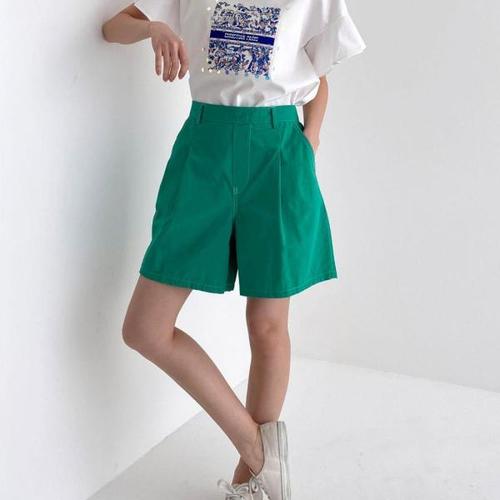 [옷자락]여자 화이트 3부 투핀턱 여름코튼팬츠 와이드핏 반바지