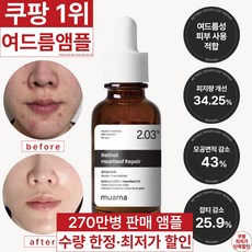 3일 여드름 순삭 진정 피지개선 모공 임상 레티놀 앰플 [270만병 판매기념 할인] [임상완료 여드름 좁쌀 피지개선] 레티놀 어성초 히알루론산 나이아신아마이드 뮤아마 앰플, 1개, 30ml