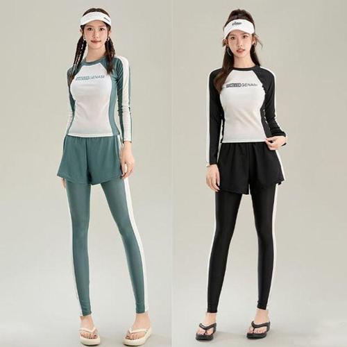 은창)롱 슬리브 팬츠 스포티 레터링 투피스 래쉬가드 수영복 WFIOY00