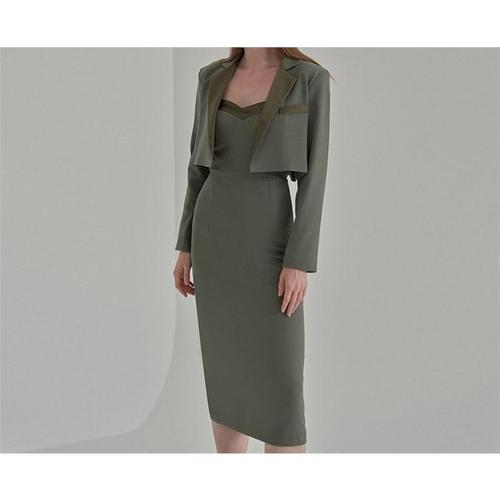 [핑크엘리제]청자켓 롱치마 셋업 데이트룩 로마엔느투피스