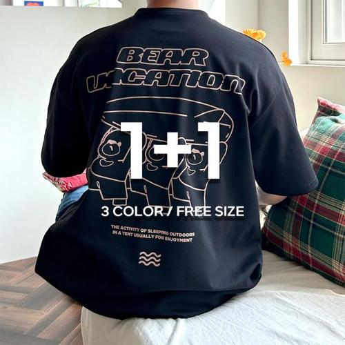 1+1스타일아유 짱편한 오버핏 캐주얼 레터링 곰돌이 프린트 반팔 티셔츠 남성용 TS3651
