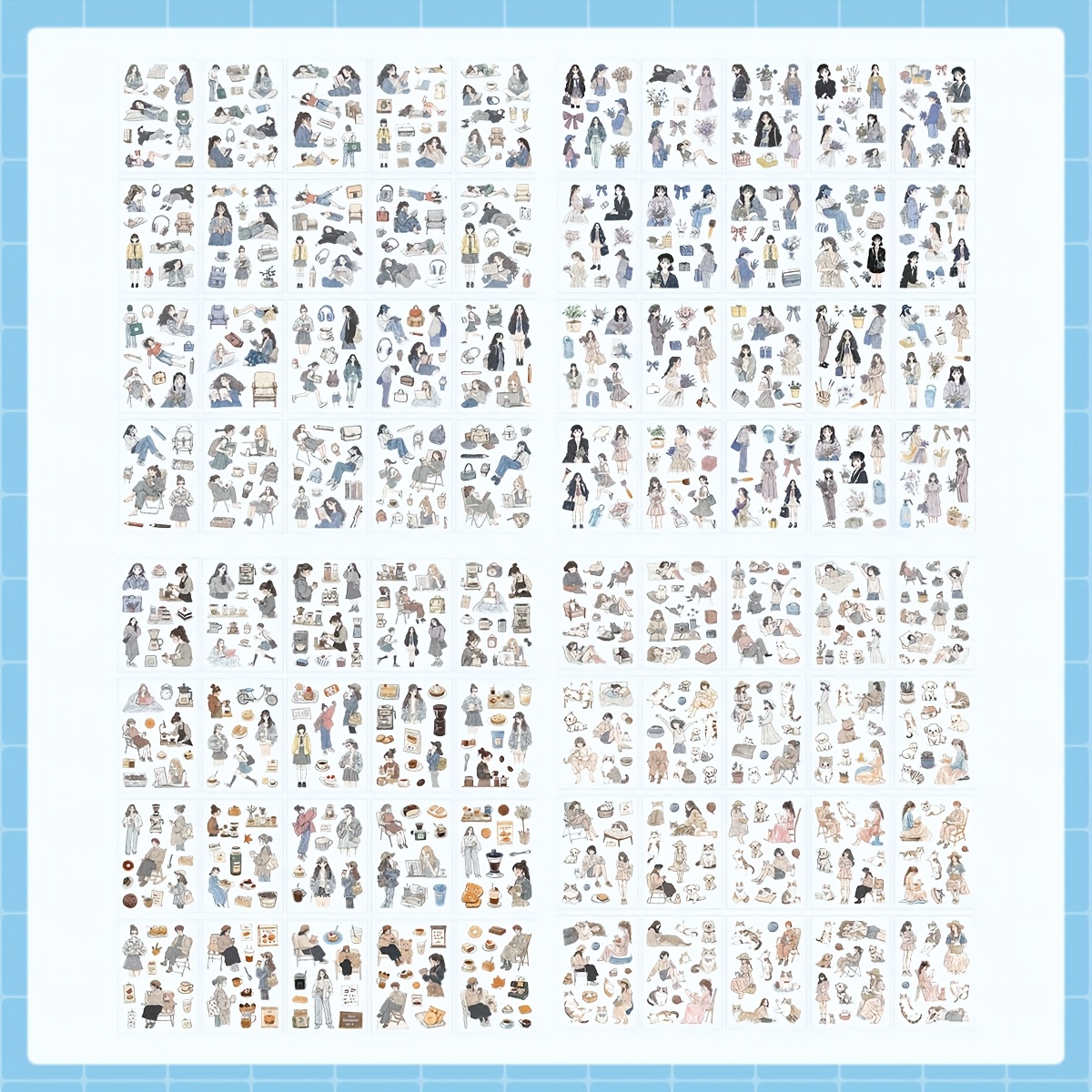 TEMU 80장/4권 - 로맨틱 걸 일러스트 스티커 세트: 러브, 캐주얼 , 애프터눈 티, 펫 테마 PET 고품질 다이어리 콜라지 (한국-유럽 스타일 패턴) DIY 물병, 스크랩북, 카드 만들기, 소품 선물, 백팩용|다이어리|카드스티커