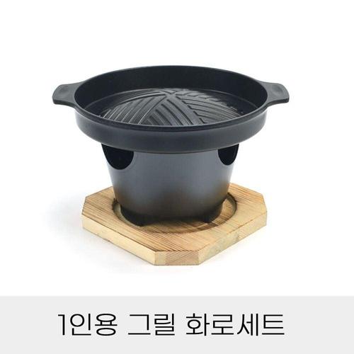 1인용 미니화로 고기불판 세트 자취생 혼술 캠핑용 구이판